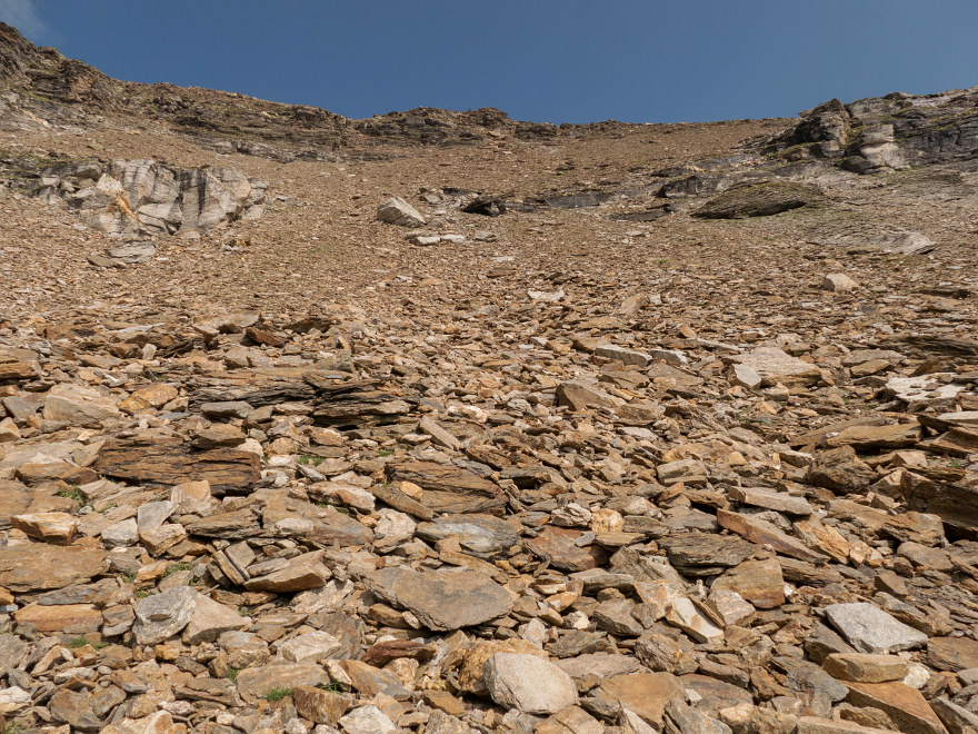 61 | le pietraie che scendono dalla cresta est...